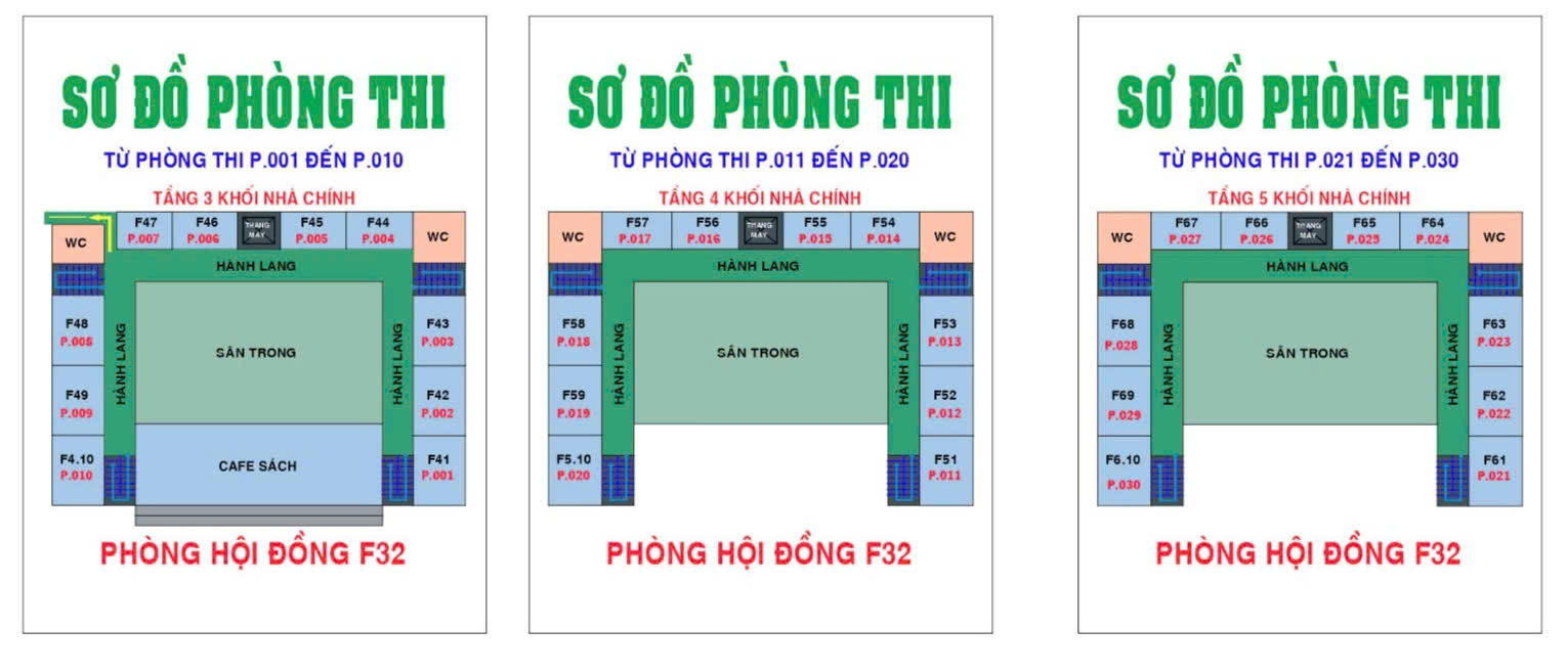 Sơ đồ các phòng thi sẽ được bố trí tại khu vực thi – thí sinh đến đúng giờ, mang theo giấy tờ cần thiết và làm theo hướng dẫn của tình nguyện viên để di chuyển đến phòng thi an toàn và đúng quy định.